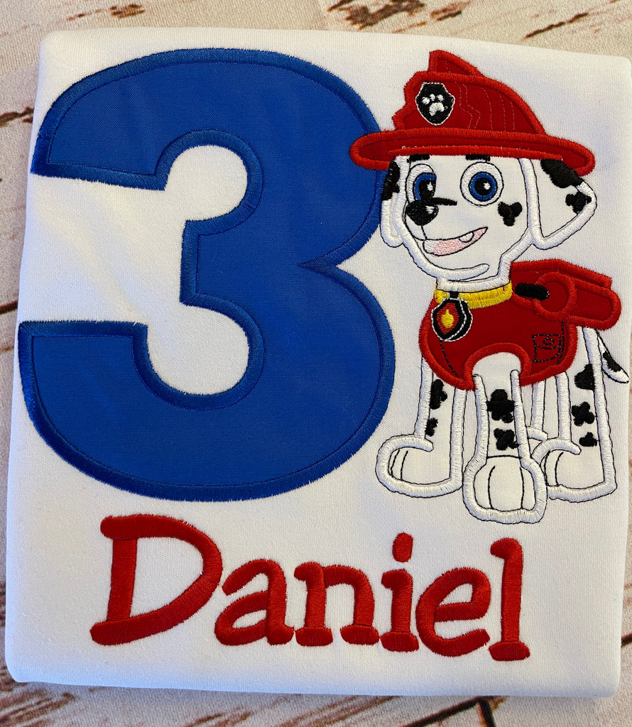 Camisa de cumpleaños de Paw Patrol Marshall, camisa de cumpleaños de superhéroe, camisa bordada de perro rojo, camisa de número de Paw Patrol