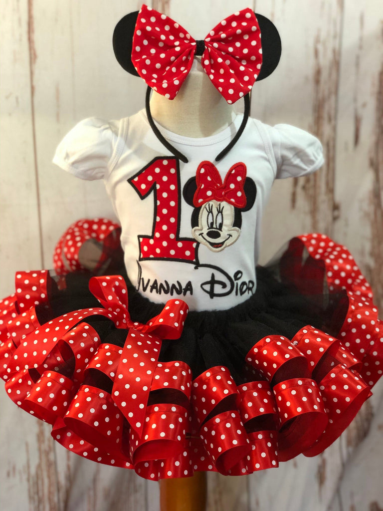 Classic Red and Black Miss mouse theme polka dot birthday outfit